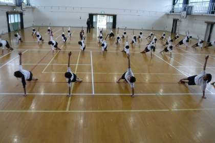 本番まであと2日となり,今日は5年生と一緒に流れや隊形,技のポイントを確認しました。あいにくの天候で体育館での練習となりましたが,一つ一つ確認しながら,本番への気持ちも高めていきました。最後には一人・二人技の確認をし,列はそろっているか?指先まで意識できているか?より完成度の高い組体操を目指したいと思います。