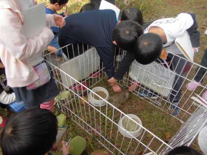 国語の『しらせたいな,見せたいな』の学習で,学校で飼育しているうさぎを観察しました。月曜日にうさぎの名前の発表があり,名前を呼びながらいろいろな部分をしっかりと観察したり,背中をなでてあげたりしていました。