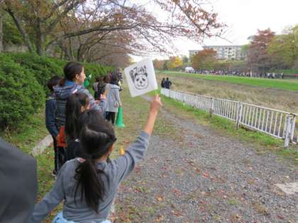 学年応援団以外にも,保護者のみなさん,たくさんの先生たち,1〜5年生までのみんなから大きな声援を受け,全員が力を尽くして走りきることができました。