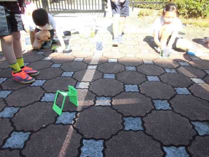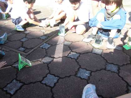 「おぉ!」と声を上げながら,楽しんでいました。光ははねかえすことができるとわかりました。