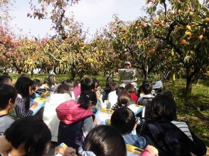 今日は柿農家の方のお話を聞きに行きました。柿を育てる時に気をつけることや大事なことなどたくさんのお話を聞かせていただきました。子どもたちも,たくさん質問をして,より興味を高めました。