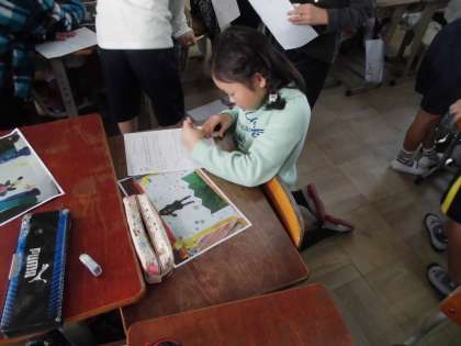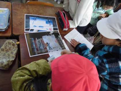 図画工作科で小さなわたしを作り,学校のお気に入りの場所で写真を撮りました。自分の作品の良いところや友だちの作品の良いところや面白いところなどを見つけ合いました。