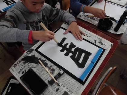 今日は上下の組み立て方に気をつけながら,「星」の字を書きました。そのまま上下を組み合わせると大きくなってしまうので,高さを低くして書くように意識しました。