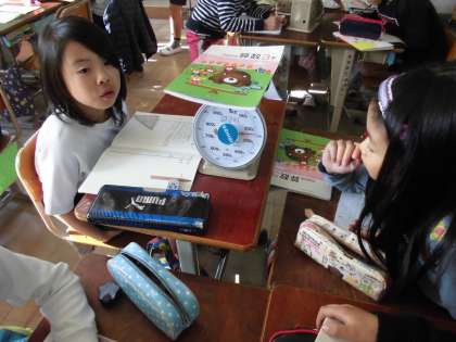 他にも理科や形の同じ国語の教科書も量って重さ比べをしていました。