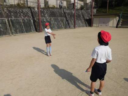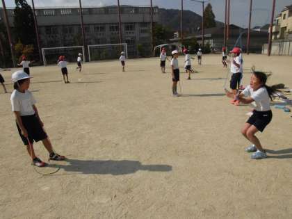 友だちの回数を数えたり,見合ったりしながら練習していました。晴れた空の下気持ち良くなわとびを楽しんでいました。