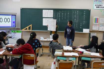 国語科では「鳥獣戯画を読む」の学習をしています。今日は,高畑勲さんが絵から読み取ったことを,読者に伝えるためにどのような工夫がされているのかを考えました。自分の考えをグループでもちより,それぞれがまとめたことを発表しあいました。同じ部分に着目していても表現の仕方が違うなど,交流する中で様々な発見がありました!