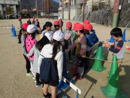 図画工作科の学習で学校にあるものをいろいろならべて楽しみました。体育倉庫の中にはおもしろい形のものがたくさんあり,子どもたちはわくわくしながら大きな作品を作っていました。最後にはそれぞれのグループが作ったものをお友達に紹介して鑑賞会を行いました。