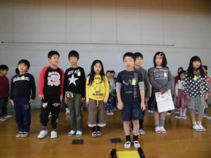 初めて舞台の上で,発表の練習をしました。