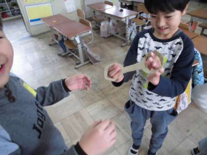 学習発表会を生かして,劇のようにすると意気込んでいるグループもあれば,生活あそび発表会を生かして,自作のおもちゃをつくっているグループもあります。2年生になって,自分たちで活動の内容を工夫することができるようになり,お楽しみ会の内容にもバリエーションが出てきました!