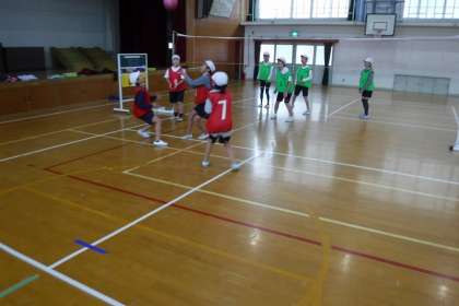体育科ではソフトバレーボールに取り組んでいます。ボールを落とさずにつなぐためにはどうすればよいか?つなぐための工夫をみんなで出し合い,ゲームで実践できるように頑張っています。声をかけたり,みんなで動いたりと各チーム様々です。さらなるレベルアップを目指していきましょう!