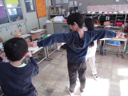 両手を広げた長さをグループで協力して調べました。