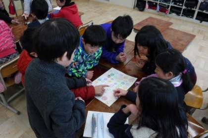 3回目のスマイル集会。今回は6年生が作成したすごろくで楽しく遊びました。「○マス進む」だけではなく,「先生とじゃんけん」「ものまねをする」など,マスの項目も1〜5年生みんながスマイルになるよう,6年生が考えました。どのグループも手作りすごろくに大満足。6年生にとっては最後のスマイル集会も大成功でした。