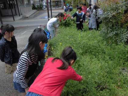 国語の詩に出てきた「おおいぬのふぐり」や,「ヤエムグラ」などを手に取って観察したり,カナブンやテントウムシを見つけた子もいました。