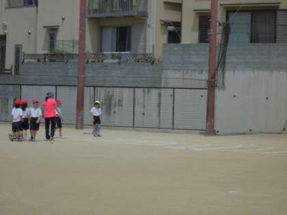 低学年と高学年がペアになり,一人2投ずつ計測をしました。