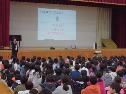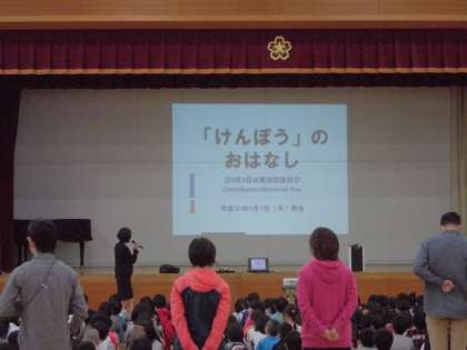 その後,憲法朝会で校長先生のお話を聞きました。