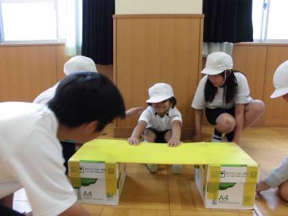新体力テストでは,1年生に各種目の測定方法や実施方法をていねいに伝えていました。目の高さを合わせて,ゆっくりと話している6年生の姿が頼もしかったです。