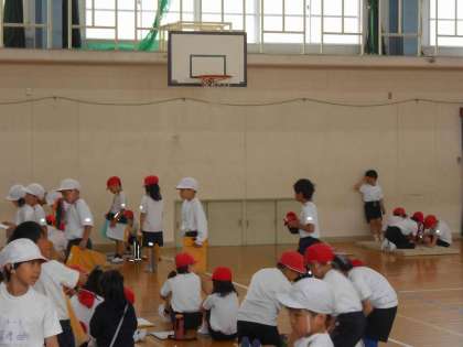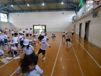 4年生に記録をしてもらいながら,子ども達は一生懸命運動していました。