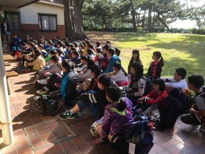 修学旅行(8)慶野松原荘に着きました