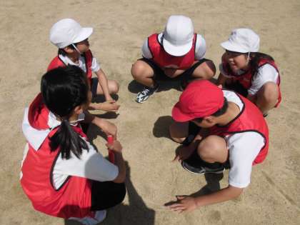 チーム毎に集まって話し合ったり,作戦を考えたりしてタイムを縮めていました。一秒でもタイムが縮まると喜び合っていました。