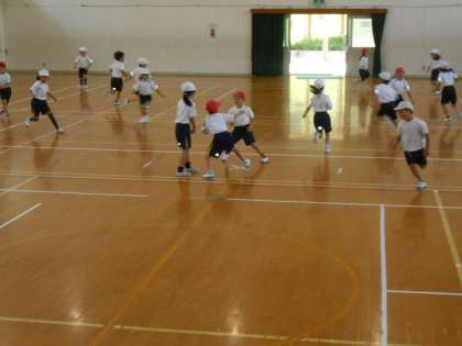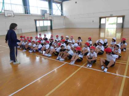 練習の後は体育の「おにあそび」でした。今日は「こおりおに」にチャレンジ。みんな必死に走り回り,終わったら汗びっしょりでした。