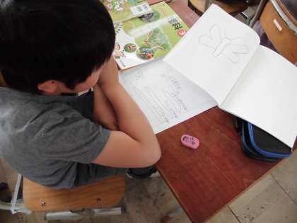 今日は,モンシロチョウの成長を予想しました。「幼虫からさなぎになるねんで!」「さなぎからちょうになるねん!」と,これまでに見たことがあることを話しながら予想を立てていました。
