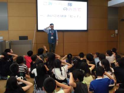 エコロジー学習では「ごみへらし隊」になって,普段自分たちが出しているごみの行方を知り,「3R」について教えてもらいました。