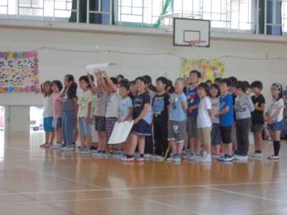 3年生は,大枝小学校クイズと,「友だち」という歌を聞かせてくれました。