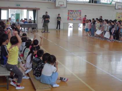 大枝小学校ができて145年にもなるという問題に,1年生はとっても驚いていました。クイズを通して,1年生も大枝小学校の事をたくさん知ってくれたと思います。
