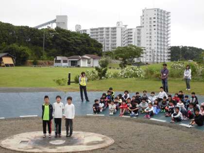 朝の集いと「みさき丸」での集合写真撮影。