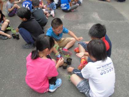 今日は,2種類の様子をじっくり観察をし,その後学校園へ植え替えました。