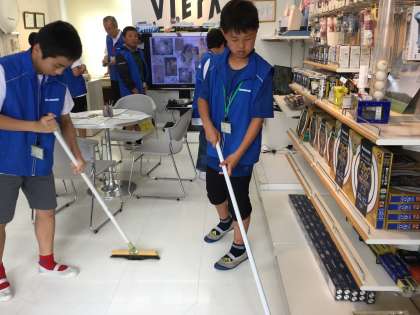 終了後は掃除に社内会議で1日のふりかえりをします。