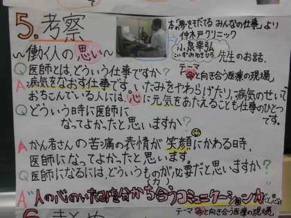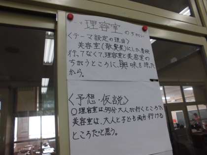 夏休みに調べた「仕事」についての研究。どの研究にも自分なりの工夫をこらしたものに仕上がっていました。実際に工場に行ったり,インタビューしたり,テーマ設定にこだわったり…。