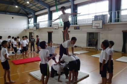 20日(土)の運動会に向けて,組体操の練習を頑張っています。一人技,二人技と基本的な事から始め,今日はクラス全員でつくる「30人おうぎ」にチャレンジ。自分の役割に責任をもち,みんなで声をかけ合いながら,クラスみんなで完成させることができました。まだまだ難しいわざもありますが,本番に向けて気持ちを高めつつ,完成度を高めていきたいと思います。