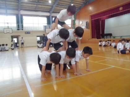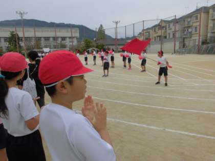 10月20日(土)の運動会にむけて,毎日,交流学級に入って練習をしています。1年生は,USAのダンス,4年生はソーラン節,5年生は組体操を練習しています。今日は,全校練習がありました。入退場や準備体操,応援練習をしました。「がんばれ,がんばれ紅組」「勝つぞ,勝つぞ白組」そして,腕を高く上げて,大きな声で「おーーっ!」と応援していました。ご家庭でも,励まし応援してあげてください。