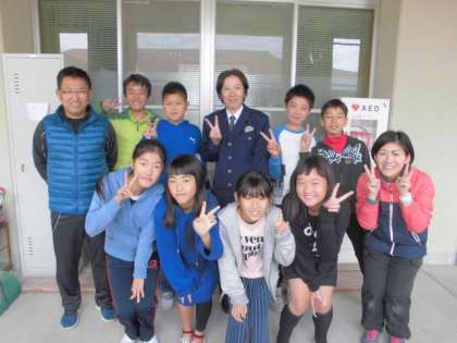 西京警察署の警察官の方と一緒に頑張りましたので,今日は,お別れの記念に写真をとりました。