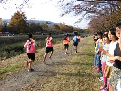 抜きつ抜かれつの接戦を大枝小学校は見事1位でゴールできました。