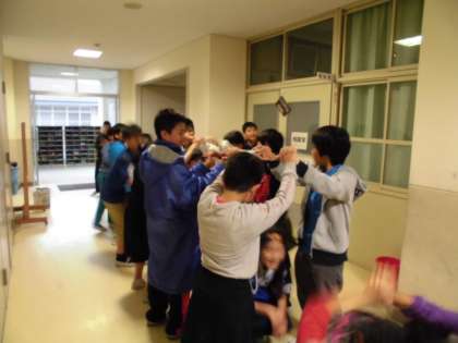 予選会レースメンバー,リザーブメンバーが学校に帰ってくると,6年生みんなが花道をつくって待ってくれていました。6年生みんなで喜び合い,笑顔でいっぱいでした。
