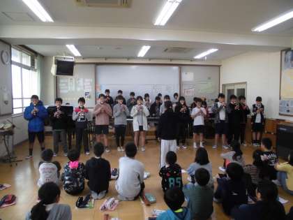 今日の音楽科授業は6年生と5年生との合同学習でした。どちらの学年も一生懸命合奏しました。