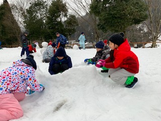 雪ダルマやかまくらができてきました。