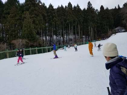 今日,初めて板をはいた子どもも滑れるようになりました。