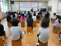 図工の時間に赤・青・黄・白の絵の具を使い,魚のうろこを一枚ずつ塗りました。同じ色で塗らない!をルールに作品を仕上げました。はじめはこんなにたくさんのうろこ塗り切れないと言っていた子どもたちでしたが,組み合わせによってたくさんの色が生まれることに驚きながら楽しく学習することができました。