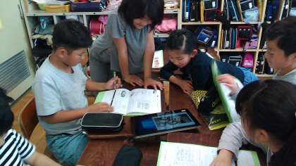 子どもたちは,今回の学習をタブレットで録画し大事なポイントを押さえながら学習を進めていきました。