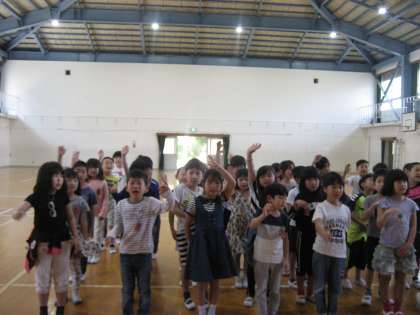 1年生を迎える会に向けて,学年の出し物の練習を体育館でしました。