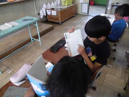 かいた考え方を見せながら,自分の考え方を隣の席の友達に説明をしました。
