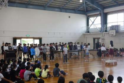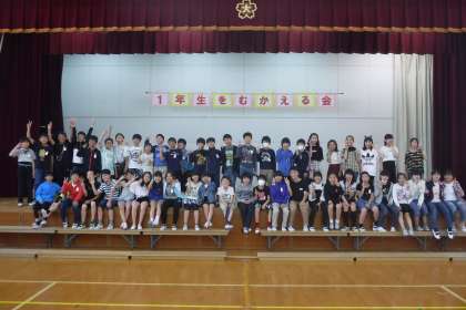 一年生をむかえる会がありました。6年生としてふさわしい発表にしようと,一人一人が意識し,休み時間などを削って練習してきました。発表では,3人のきれいな歌声でスタートし,歌と合奏で「カントリーロード」を披露。最後には手作りのカブトをプレゼントしました。