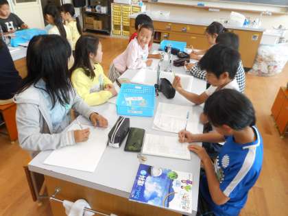 理科の学習でインゲン豆の発芽について勉強しています。発芽には何が必要?「温度・空気・光・水・土」いろいろな条件で調べました。