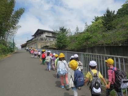 2年生は1年生のことを考えて,1年生を内側にしてくれたり,手をつないで歩いてくれたり,とっても優しくしてもらいました。そのおかげで1年生はみんな安心して遠足を楽しんでいました。
