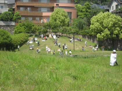 桂坂公園では,レジャーシートを使って,坂滑りを楽しんでいる子が多かったです。