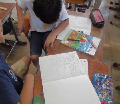算数では「何倍でしょう」の学習をしました。テレビ塔が学校の何倍になるかを図に描き,式をたてて考えました。