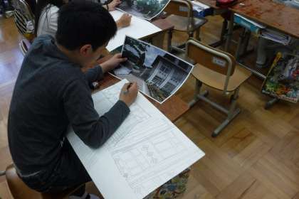 図画工作では,「わたしの風景」に取り組んでいます。一人一人が校内でお気に入りの風景を選び,画用紙に思いを込めて表現します。どのような作品になるのか楽しみです。